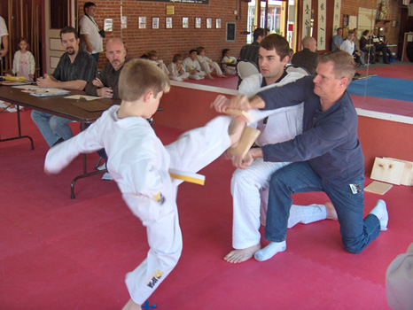 ![]() Every two months, an official grading is presented for the students. During this grading, our students show their instructors what they have learned since the last test. If the students have shown improvement, then he/she is rewarded with their new belt. Before each testing, the student first has to pass a pre-test performed during class by the instructor. Afterwards, the instructor gives the student their o.k and they are allowed. Also this is when the student will be given further advise on how they can improve. If they are not ready, the student is informed of whay they still need to work on. To be ready, the student has requirements that must be met.